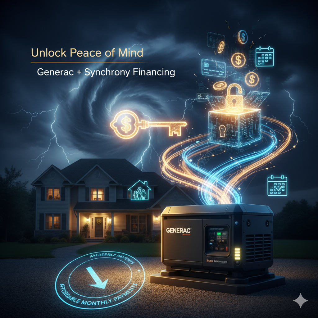 By utilizing our Synchrony partnership, many of our customers qualify for $0 down and low interest rates. This allows you to get your Generac installed and ready for hurricane season without any immediate out-of-pocket expense.